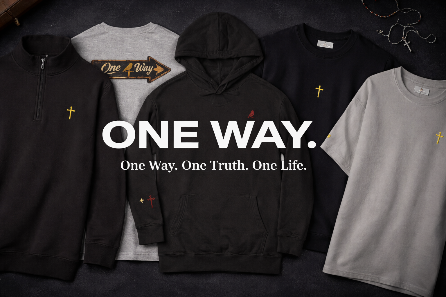 Share your faith with purpose. Wear the cross, live the message. "I am the way, the truth, and the life." John 14:6 — Our apparel and gifts are designed to inspire conversations about faith, hope, and the One Way that leads to eternal truth.